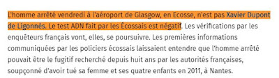 Premièrement ceux qui connaissent l'homme indiquent qu'il ne ressemble absolument pas à XDDL. Deuxièmement, un ami indique qu'il connait cet homme depuis plus de 30 ans (et que ce n'est pas lui évidemment). Troisièmement, les empreintes digitales façon pâté d'encre (donc peu fiables) ne correspondent pas (les médias disent partiellement, ça veut dire que c'est négatif point).