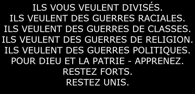 Les médias corrompus par les démocrates, les globalistes et mondialistes, vous font tous croire que Trump est un incompétent et que c’est lui qui encourage les émeutes, mais pour ma part, je regarde énormément d’interventions de Trump en direct et je peux vous garantir qu’il est POUR le peuple et qu’il est en train de se battre pour nous tous. Oui, même pour nous qui sommes en Europe. Car s’il arrive à neutraliser cette mafia, qui a la main mise sur le monde entier, alors, le monde entier sera libéré.
