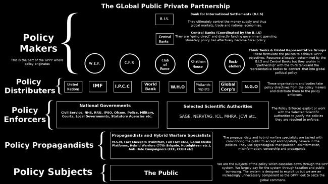 Le partenariat public-privé mondial (G3P) – essentiellement un lien entre les banques centrales, les groupes de réflexion sur les politiques internationales, l’ONU, les multinationales, les ONG et autres organisations « philanthropiques », et les gouvernements – est à l’origine du déploiement mondial de l’identité numérique. Les « partenaires » d’ID4D comprennent la Fondation Gates, le réseau Omidyar et le Forum économique mondial (WEF) qui représente les « entreprises mondiales de premier plan » cherchant à « façonner l’avenir ».