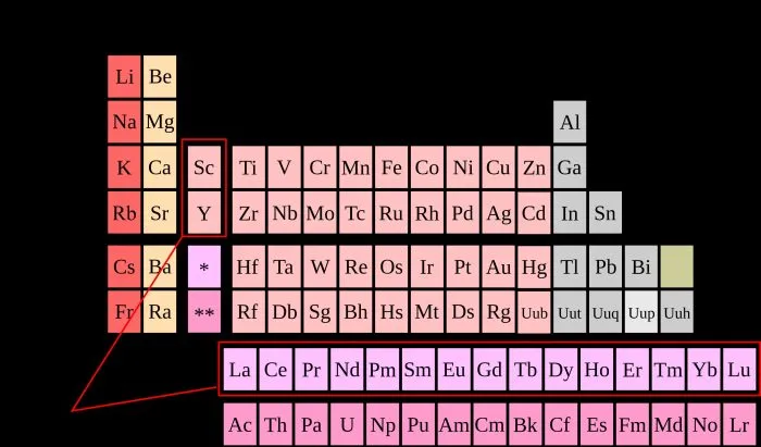 Tableau périodique des terres rares ( Cdangderivative work-CC BY-SA 3.0)