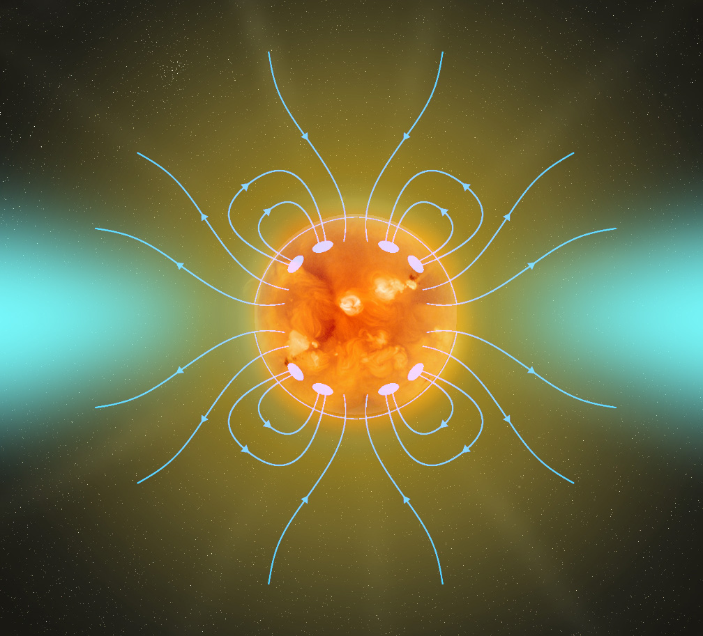 Le physicien solaire Phil Scherrer, également à Stanford, décrit ce qu’il se passe : « Les champs magnétiques du soleil faiblissent, tombent à zéro, puis réémergent avec une polarité opposée. C’est une partie normale du cycle solaire. » Une inversion du champ magnétique du soleil est littéralement un grand événement. Le domaine d’influence magnétique du soleil (qu’on appelle aussi « héliosphère ») s’étend à des milliards de kilomètres au-delà de Pluton. Des changements dans la polarité du champ ont des répercussions jusqu’aux sondes Voyager, sur le seuil de l’espace interstellaire.